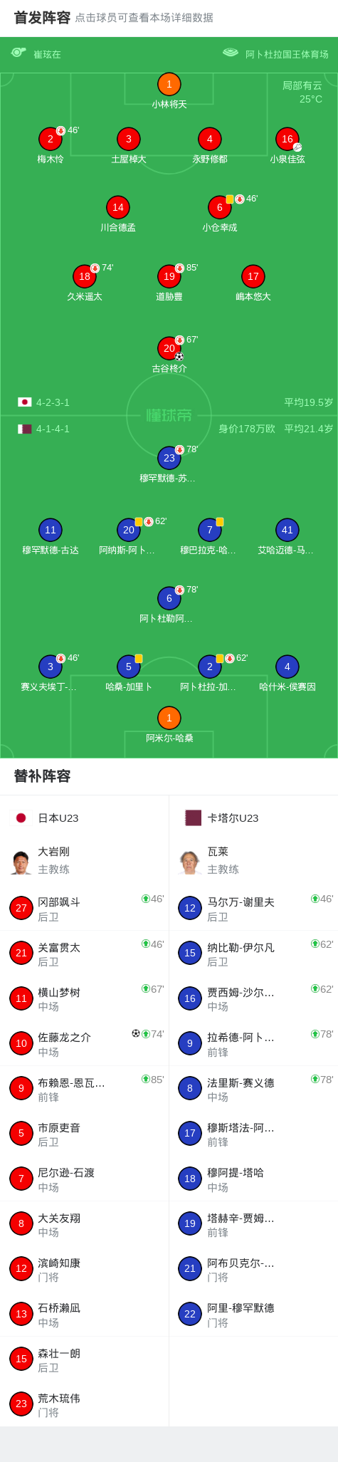 北京时间1月14日,U23亚洲杯小组赛第三轮,日本U23对阵卡塔尔U23。上半场小泉佳弦传中,古谷柊介头球破门。下半场哈桑出球失误,佐藤龙之介低射破门。最终U23日本2-0战胜卡塔尔U23全胜头名出线。日本U23在1/4决赛的对手是约旦U23。关键事件第30分钟,小泉佳弦传中,古谷柊介头球破门,U23日本1-0卡塔尔U23第80分钟,哈桑出球失误,佐藤龙之介...